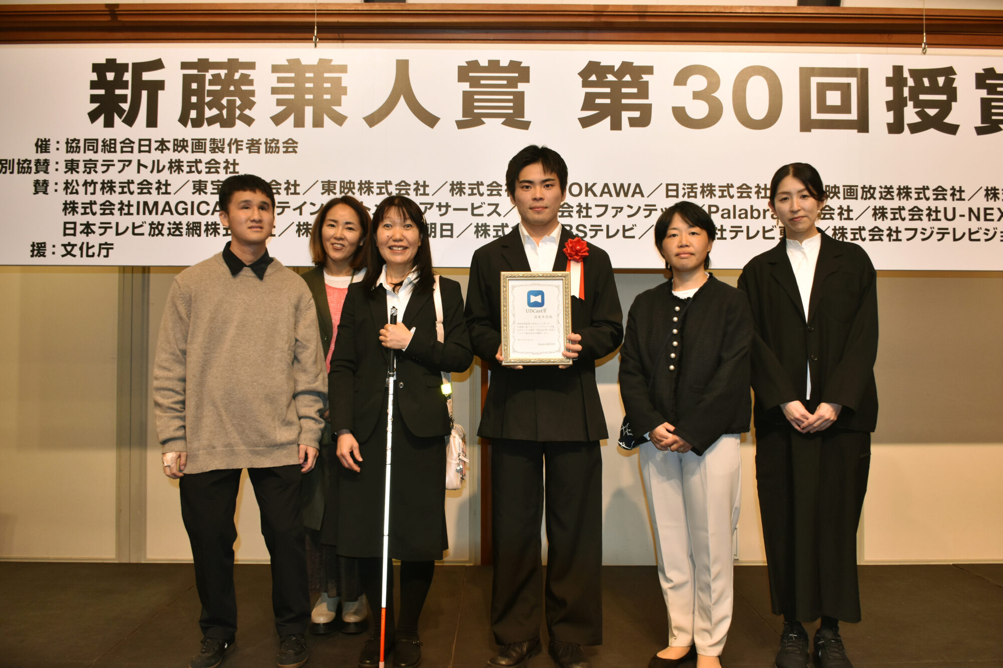 なお、『見はらし世代』の字幕・音声ガイドと、松井俊之氏がプロデューサー賞を受賞された『この夏の星を見る』の音声ガイドは、パラブラで制作しています。授賞式には、 字幕・音声ガイドモニター検討会に参加されたモニターのみなさまにも出席いただきました。